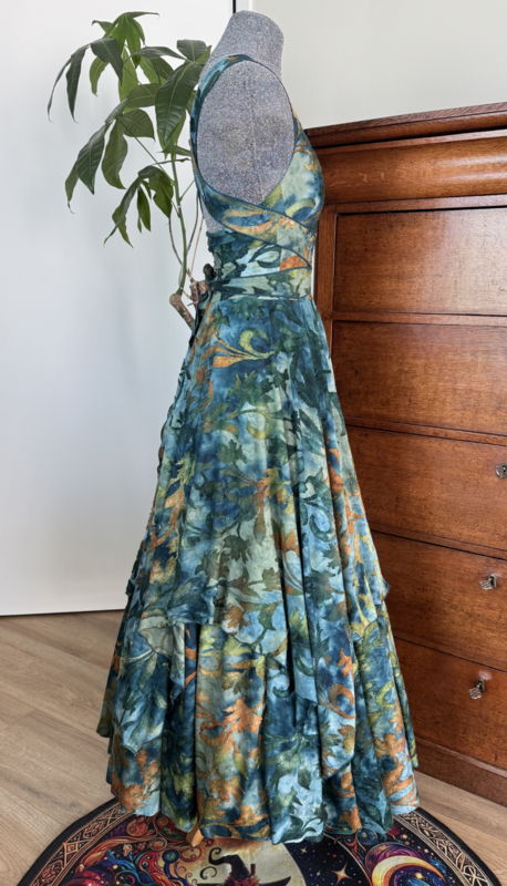 Met de lange rok ruche onder het jurkje heeft het als set een feestelijke uitstraling. Los van elkaar kan het ook zeer goed casual gedragen worden.