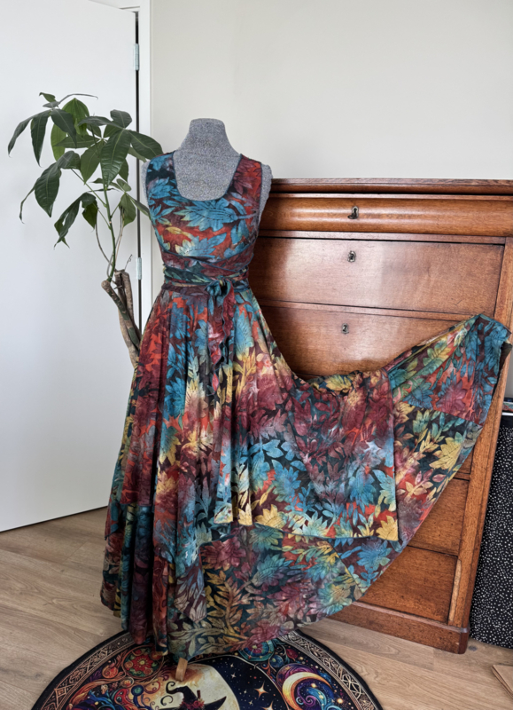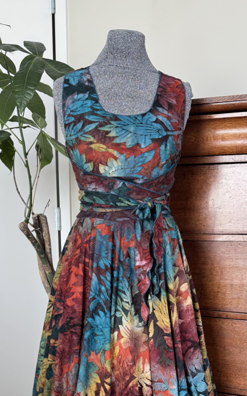 Zomerjurkje kruisband met punten & rok ausbrenner bric petrol oker