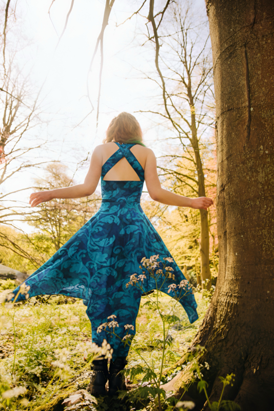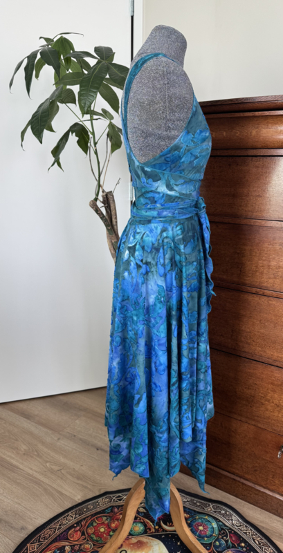 Heerlijk zomerjurkje met kruisbanden en punten ausbrenner. De kruisbanden kun je op verschillende manieren om het lijf wikkelen.